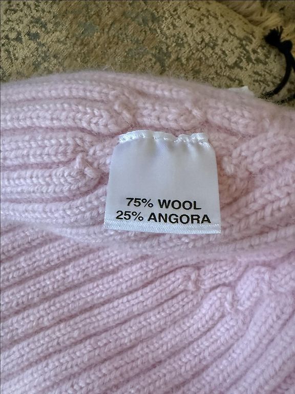 100% wool. Very beautiful hat.