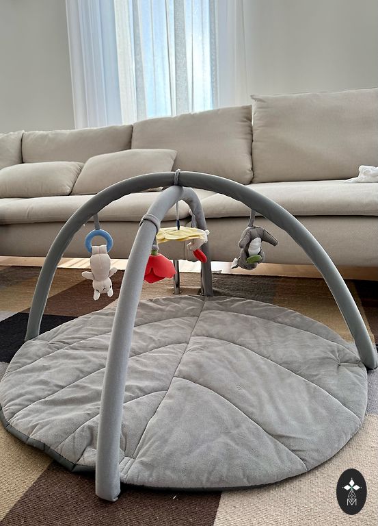 Müüme meie armastatud laste mängumatti. Kõik puhas, puuduvad defektid. Mänguasjad on erinevad - kõristid, peegel, piiksub, krõbiseb. Mänguasjad on eemaldatavad. Matt on väga pehme. Neutraalne hall värv, mis on suurepärane väikestele beebidele, kuna ei tõmba tähelepanu mänguasjadelt kõrvale.