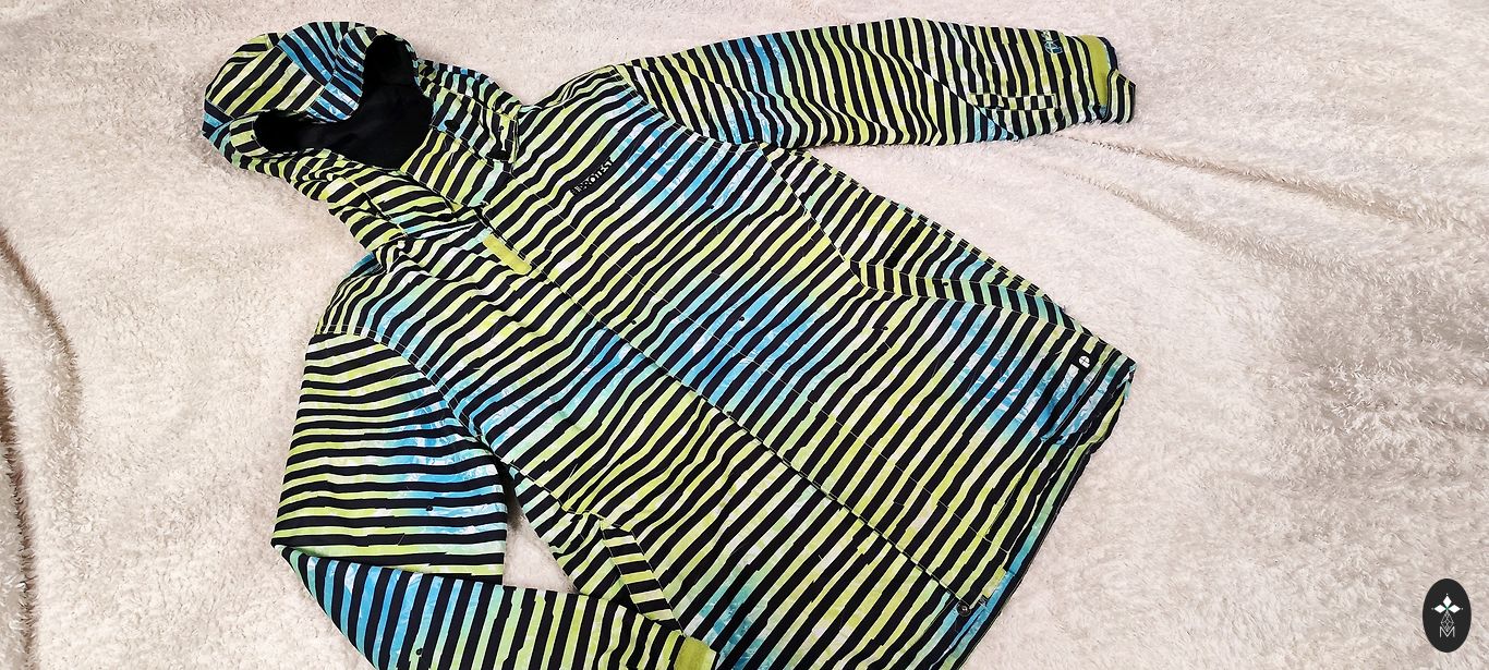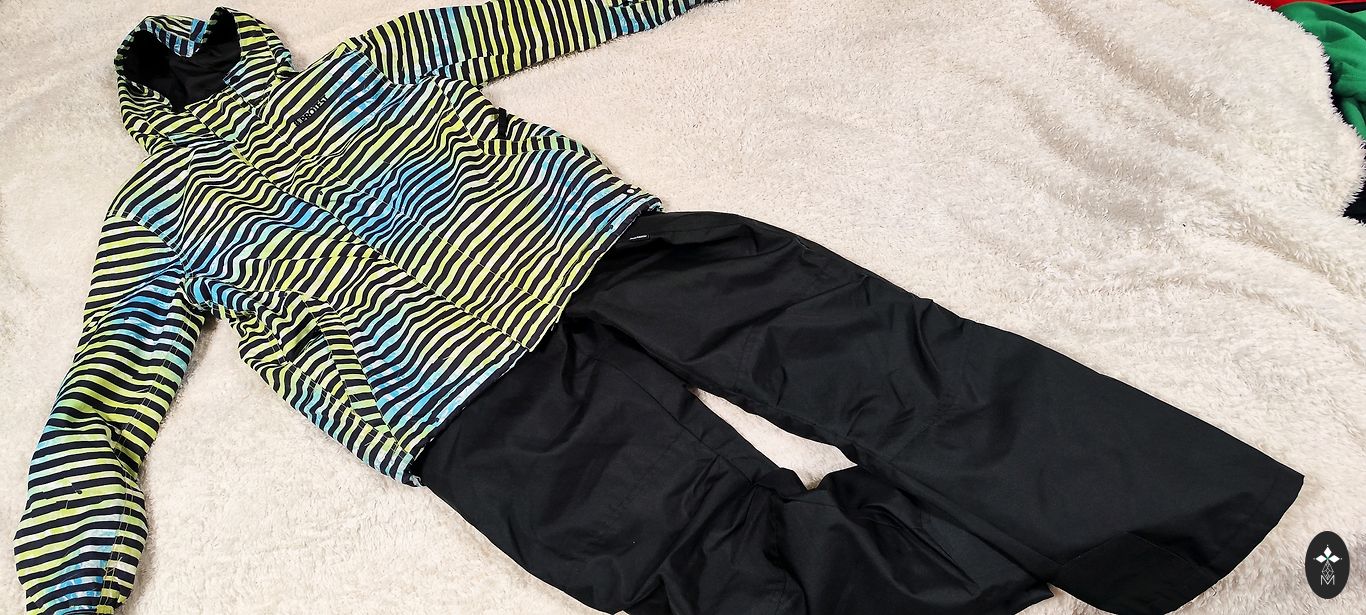 Imeline kombinesoon aktiivse puhkuse nautimiseks. Eelmisel aastal ostetud järelturult, nüüd juba väike. Põlved ja tagumik ei kulu. Kulunud on sisemised kiud, mida näeb fotol, samuti on jalgade otstest eemaldatud helkuriribad. On soojem kui tavalised kombinesoonid. Kõik töötab - lukud, klambrid, nööbid. Sobib rohkem 134 suurusele.