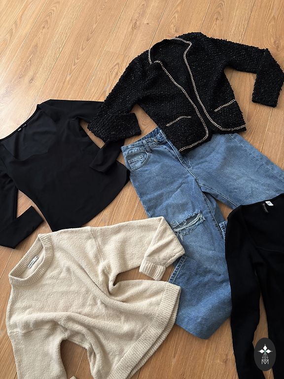XS dydis, šiek tiek sutrumpintas megztinio ilgis, bet nėra crop.
