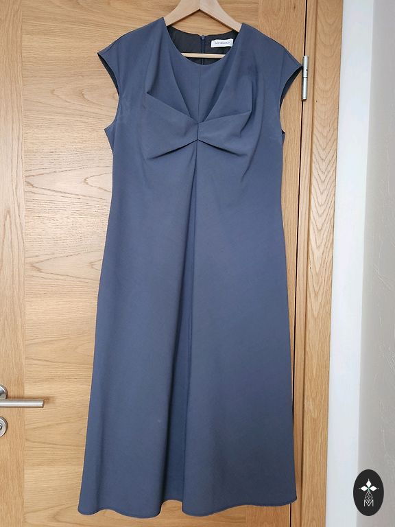 Tumedad küllastunud toonid. Vormi rõhutav lõige. Keskmise paksusega sisukas kangas. Puuvill. Viskoos. Elastaan. Pikkus 106 cm. Kaenla alt ja puusadel 52-54 cm. Taga tõmblukk. Väike lõhik. Korraga üritusel kantud.