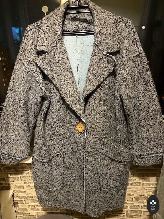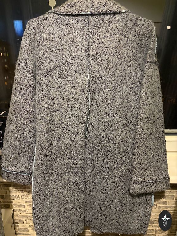 Roku garums 64 cm, mēteļa garums 112 cm, krūšu apkārtmērs 111 cm un gurni 114 cm. 20% kašmirs.