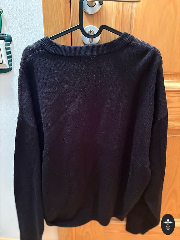 Priekšā melns, uz muguras zīmējums.