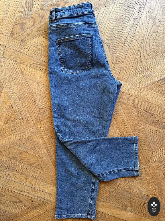 Ilgis nuo peties 62 cm. Eur 34./XS dydis, tiks ir 36./S. Išskyrus rankomis susiūtą atsilaisvinusią siūlę dešinėje pažastyje (paskutinėje nuotraukoje), kitų defektų nėra, audinys nesusivėlęs, visos sagos vietoje, kišenių nenaudojau, vis dar užsiūtos.