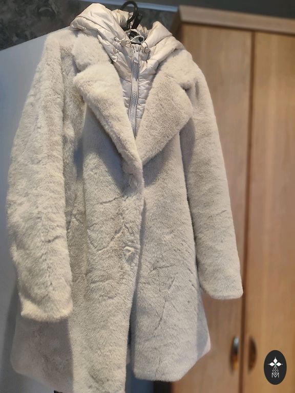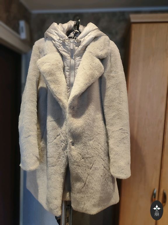 Uus. Suurus XS, kuid tundub, et on üsna suur. Suurepärane S suurusele. Sirge lõige. Laius ~48cm x 2; pikkus ~68cm. Varrukad ~62cm ja sees on mansetid. Mõlemal küljel kaenla alt alla on trukid, mida saab vajadusel avada. Kapuuts eemaldatav. 80% udusulgi, 20% sulgi. Saatmise eest tasub ostja.