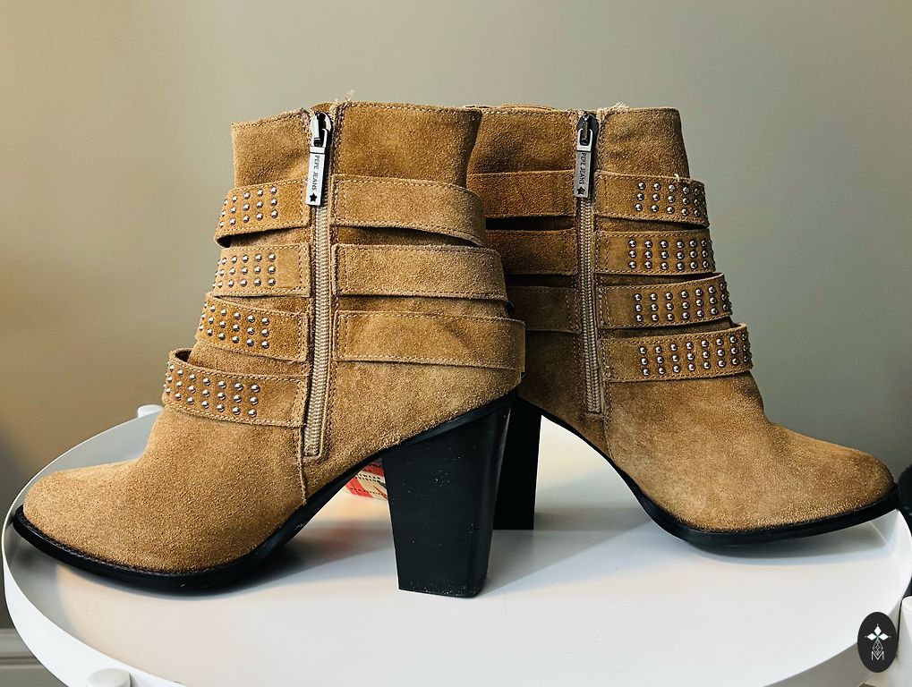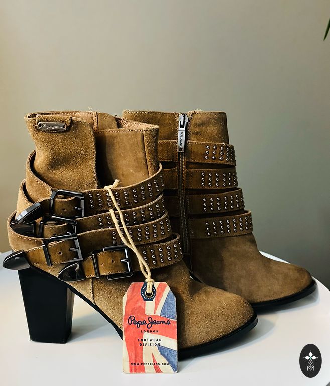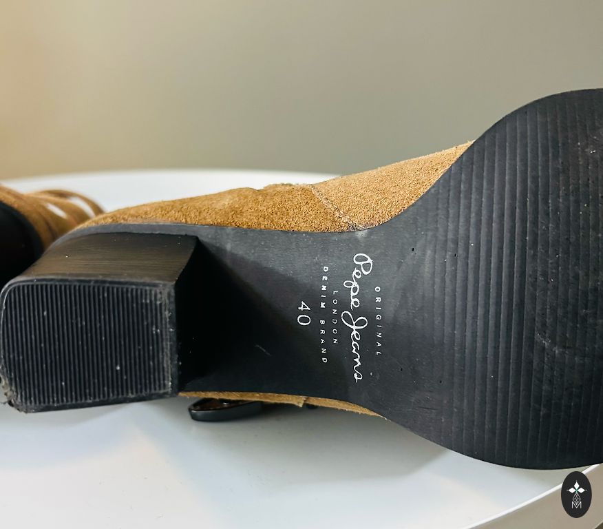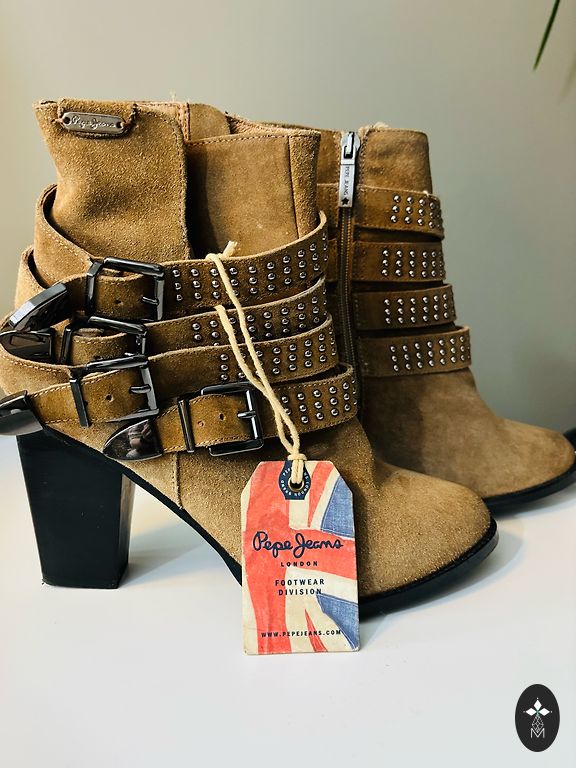 Stilingi batai iš natūralios zomšos. Aukštis 15 cm, padas 4 cm. Spalva tamsiai samaninė. Atvežti iš Italijos. Labai patogūs, tinka plačiai kojai su užtrauktuku ir šonine guma. Labai geros būklės. Be defektų. Tinka 39 dydžiui.