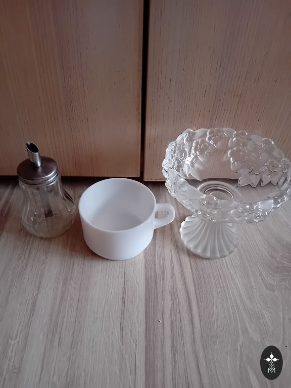 3 tk klaasnõud, ei tea, milleks mõeldud, aga väga ilusad - paks klaas sellise nagu mullimustriga. Kõik kokku - 6 eurot. Saadan Omnivaga.