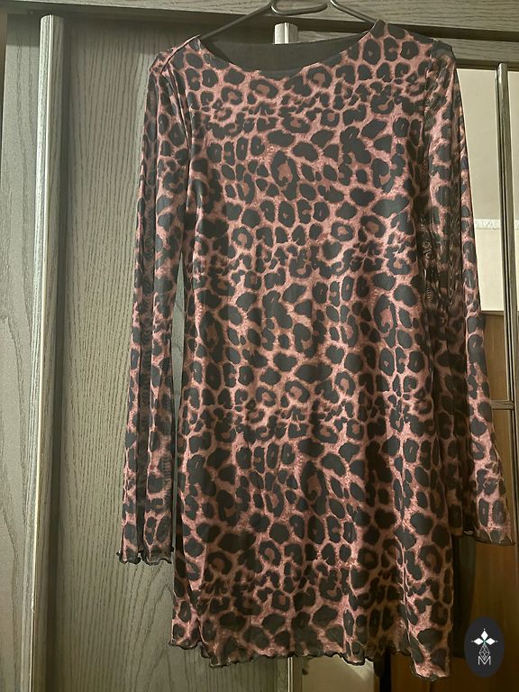 Minkšta medvilninė suknelė, viduje minkštas flisas, oversize kirpimas, dydis nurodytas xs, tiks nuo xs iki m. 60% medvilnė, 40% poliesteris. Ilgis per nugarą 81 cm, plotis krūtinėje 53 cm, visas ilgis 50 cm, rankovė nuo peties 77 cm. Rankovės plačios.