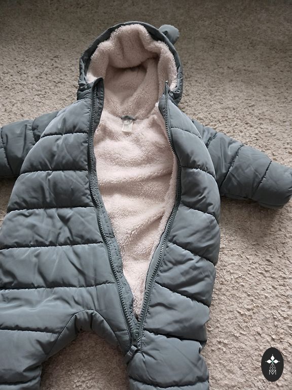 Ideal set for winter fun. Very warm, with reflective elements. Worn only a couple of times, quickly outgrew it. Size 86, but will definitely fit up to size 98. Includes a vest, the fur on the hood is removable. Shipping included.