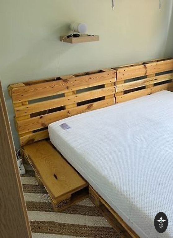 Kaheinimese kaubaaluse voodi madratsiga, suurus 140×200 cm. Kahepoolne madrats – üks pool ortopeediline. Madratsikattel on väike defekt, mis on näha teisel pildil.