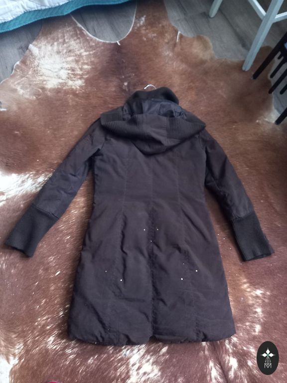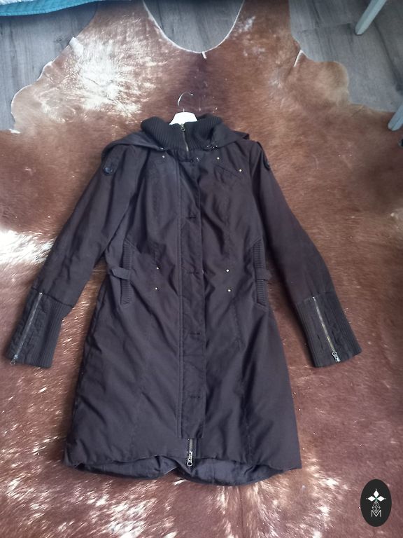 Зимняя куртка Zara, искусственный наполнитель. Надевалась несколько раз, дефектов нет. Интересный коричневатый оттенок. Мужской размер L/42, но хорошо подходит для женщин с размером M. Карманы на молнии, утяжки внизу и на капюшоне, есть внутренний карман.