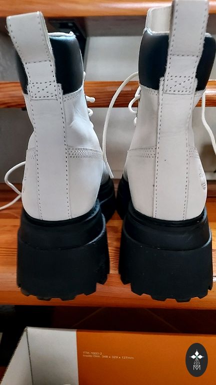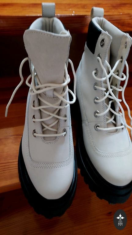 Timberland nahast poolsaapad. Väga kvaliteetsed, mugavad, niiskuskindlad, pehmed. Kantud paar korda, sest kuidagi ei sobinud minu garderoobi. Ostetud paar aastat tagasi Rootsis, nüüd seisavad kurvalt kapis. Sobivad ka jahedamale ilmale, sest neil on paks, libisemiskindel tald ja sees on väike selline polsterdus (soojustus). Kontsa kõrgus umbes 9 cm, aga talla paksus umbes 3 cm, seega kokkuvõttes ei ole väga kõrge konts. Puuduvad defektid, kriimustused või kandmise jäljed. Originaalkast puudub. Sobivad suurusele 39-39.5, normaalsele jalale.