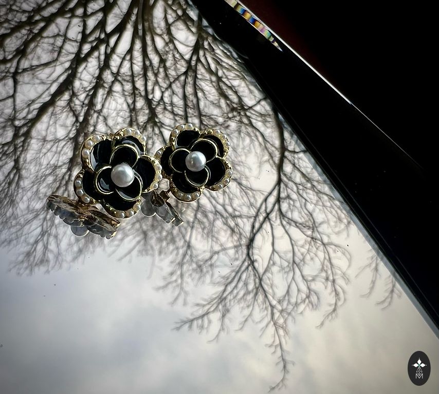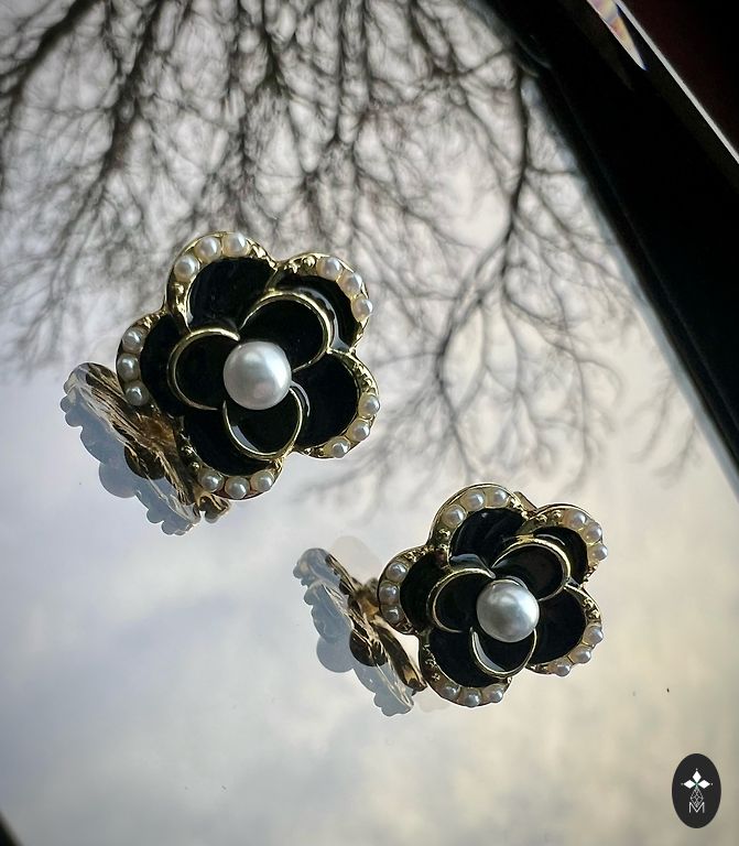 Auskarai su keramikos elementais.