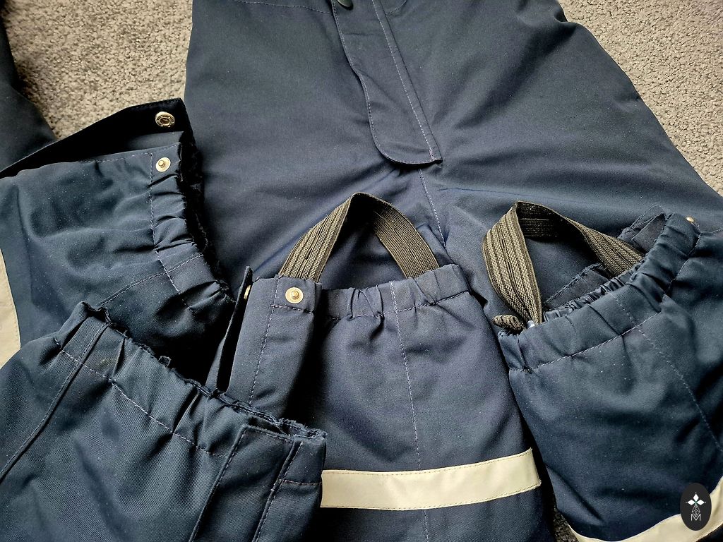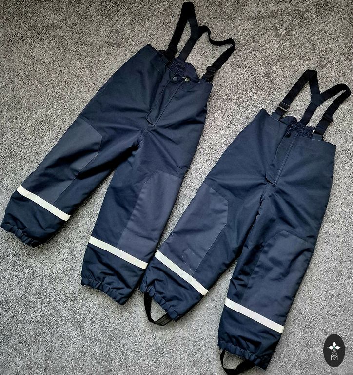 86 izmērs, bet mēs vilkām arī uz 92 cm augumu. Bija OK. Siltas, ērtas, ūdens necaurlaidīgas ar gumijām apakšā. Nekādu defektu un nodilumu nav.