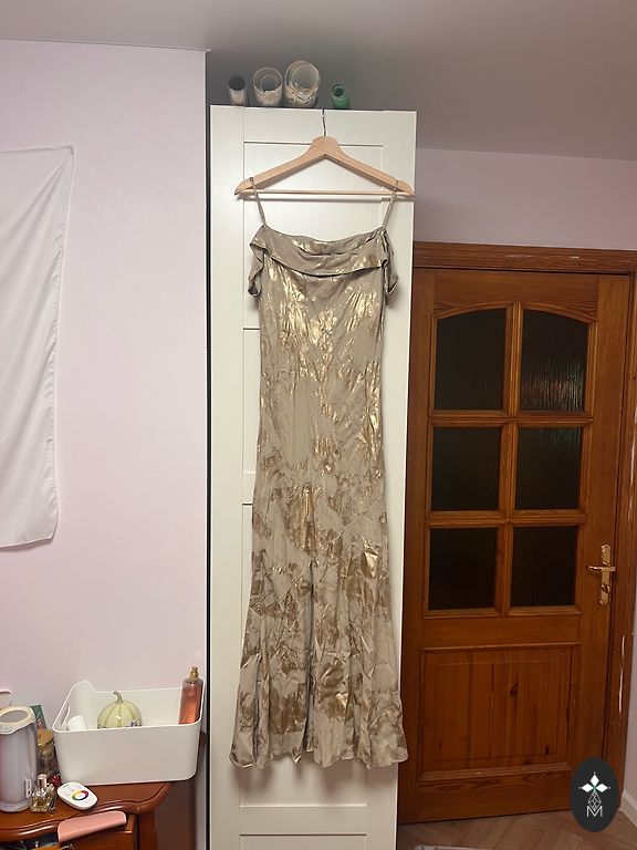 Красивая, роскошная вечерняя платье. На плечах подкладки, большой разрез. Размер XS.