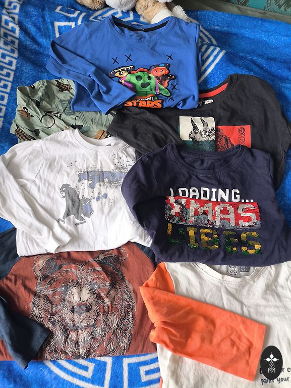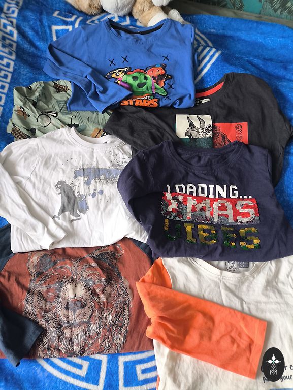 Dėvėti su rūpesčiu. Mėlyno ir pilko viršaus trūkumų nepastebiu, bet kituose yra keletas dėmių, kurios neišsiplauna, nėra ryškios, galiu atsiųsti papildomų nuotraukų. Baltajam buvo atšokusi vietomis apatinė kraštinė - susiūta rankomis.
