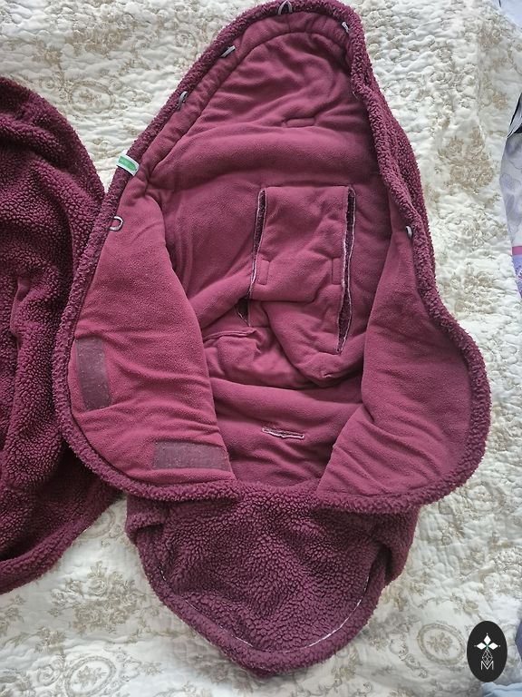 Очень теплый мешок для коляски из овечьей шерсти, который можно использовать как в люльке, так и в прогулочной коляске, добавив удлинитель для большего ребенка. Выстирано и ждет нового владельца.