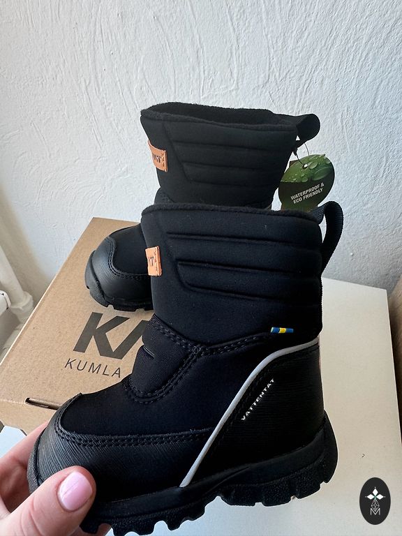 Winter boots with fur. Rubber soles. The size didn't fit us; I would buy them for a child with a foot size of 21.
