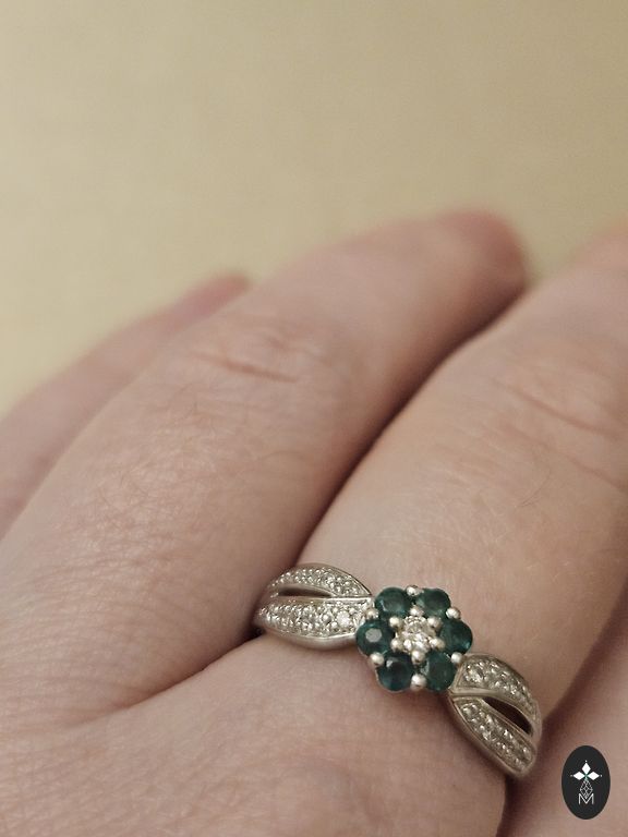 Gredzens ar briljantu un pērlēm