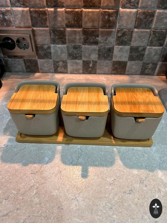 Liels, roku darbs tējas galdiņš (paplāte). Stikla gaiwans. Aroma krūze. 2 tējas krūzes. Koka pincete. Korķa statīvs.