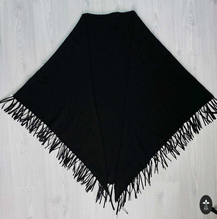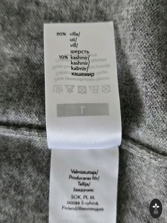 Paks kangast kampsun villaga. Kahekihiline kangas. Soe. Mahukad varrukad. Märgitud suurus S, kuid sobib ka suurusele M. Varruka pikkus (kaelast) - 75 cm, Laius kaenlaaluste vahel - 45 cm, Kogupikkus - 63 cm.