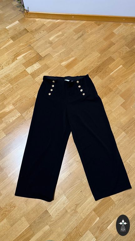 Ļoti ērtas, platas bikses ar sīku svītru audumā, nav ļoti plānas. Audums padodas.