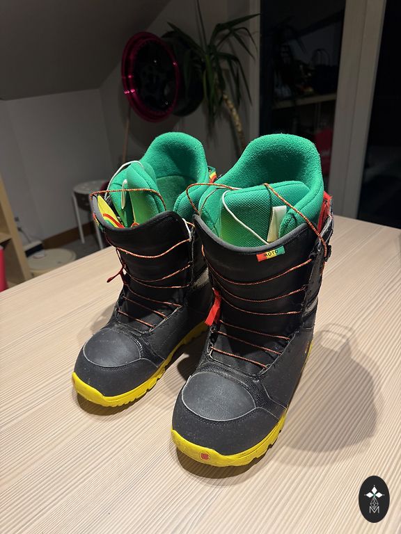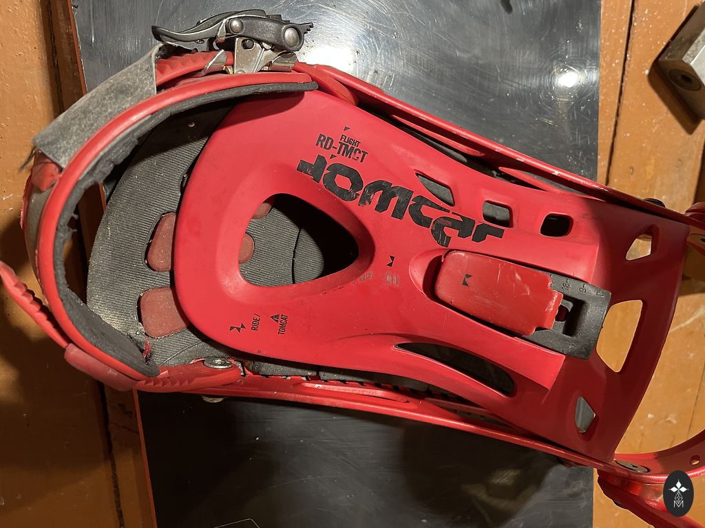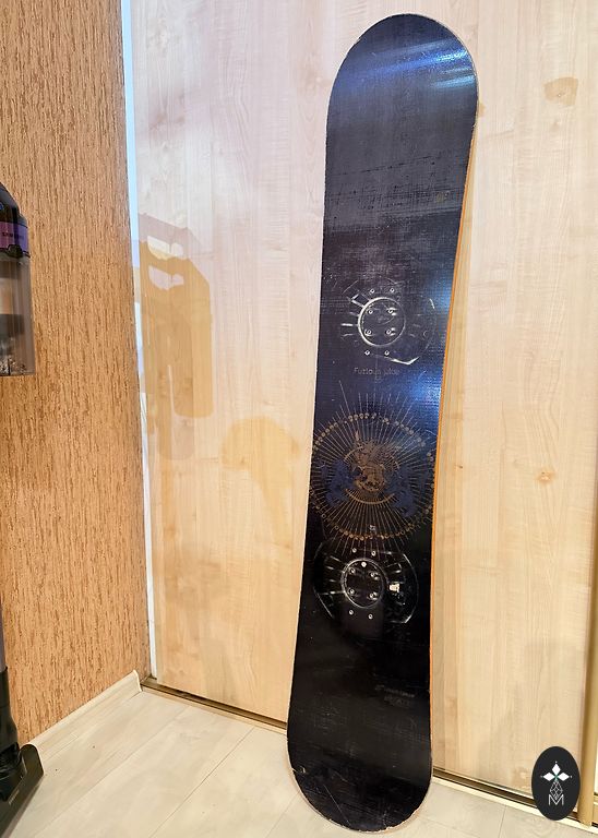 Доска F2 Summit относительно мягкая и прощает ошибки. Скользящая поверхность и края доски целы. Вощеная и готова к использованию. Крепления Ride Tomcat Flight очень легкие и жесткие. Подойдут также