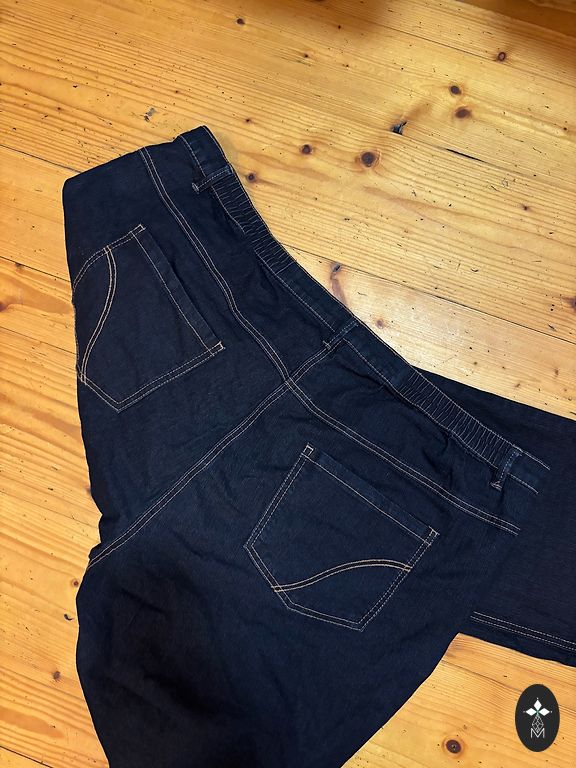 Указанный размер 52 подходит для размера 54. В талии 54смx2, тянется до 64смx2, в бедрах 65смx2, длина 99см, внутренняя штанина 71см.