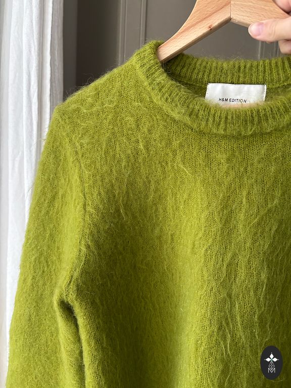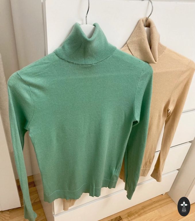 Roheline kõrge kaelusega džemper.