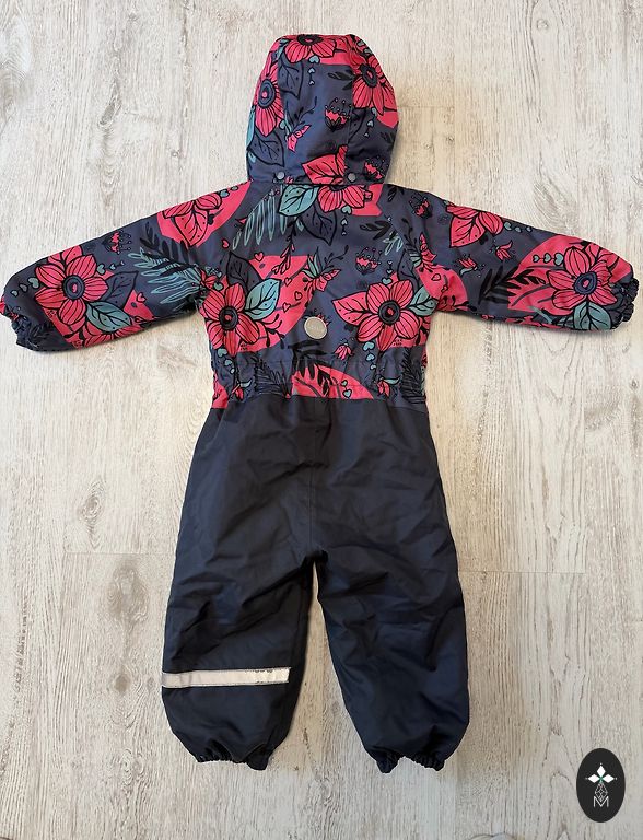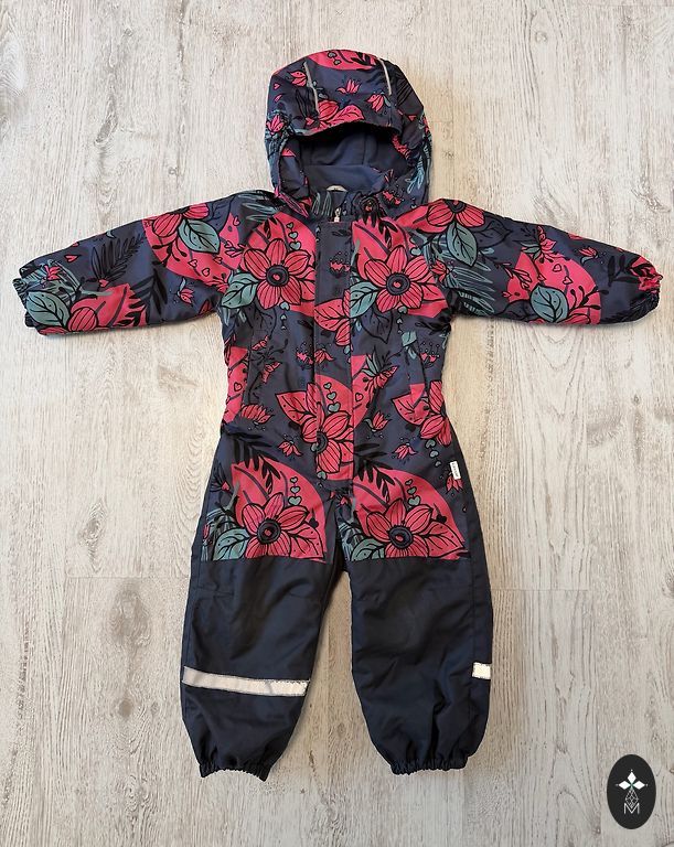 Parduodu naudotą vaikišką kombinezoną. Matomos naudojimo žymės. Kai kur medžiaga šiek tiek nusitrynusi nuo naudojimo. Nėra guminių kelnių apačioje. Yra nedidelių dėmių.