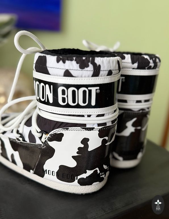 Parduodu kartą kieme užsidėtus Moon Boot, kad supratau, jog vis dėlto yra per maži. Dydis 35-36. Nuostabus karvės raštas - nėra kaip standartiniai Moon Boot. Yra originali dėžė, pirkti Yoox.