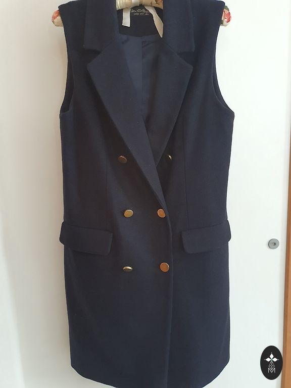 Ražotāja izmērs - 40, derēs uz S/M, jāskatās pēc mēriem. Jāņem vērā, ka mētelis pufīgs, līdz ar to, kāds centimetrs no mēriem nost.