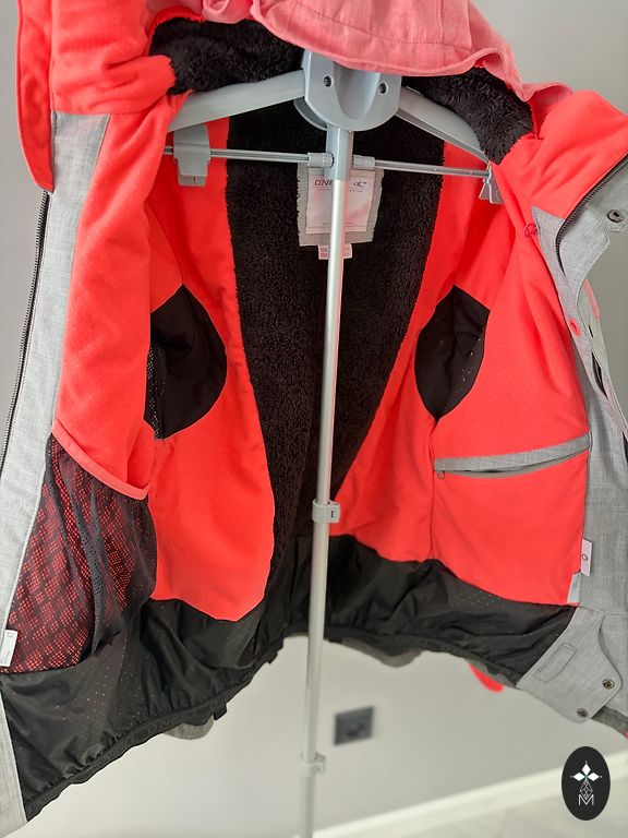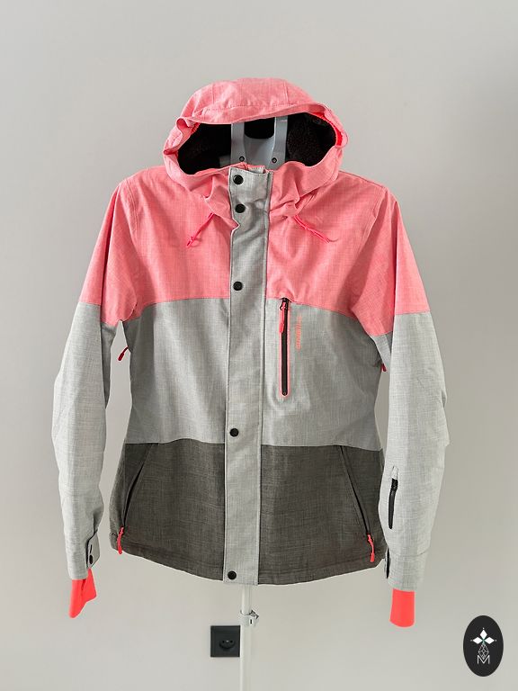 Ilus ja soe suusajope või igapäevaseks jalutamiseks, regulaarne lõige. Sobib kindlale 40./L suurusele. Palju taskuid, reguleeritav kapuuts, kaenlaaluste ventilatsiooni funktsioon. Puudustest - pildil nähtav varruka "kindad", sellised mõlemad. Seespool kaenlaalustes kangal mõned tupsud, saab eemaldada nukueemaldajaga (minu oma on katki). Saatmine hinnas.