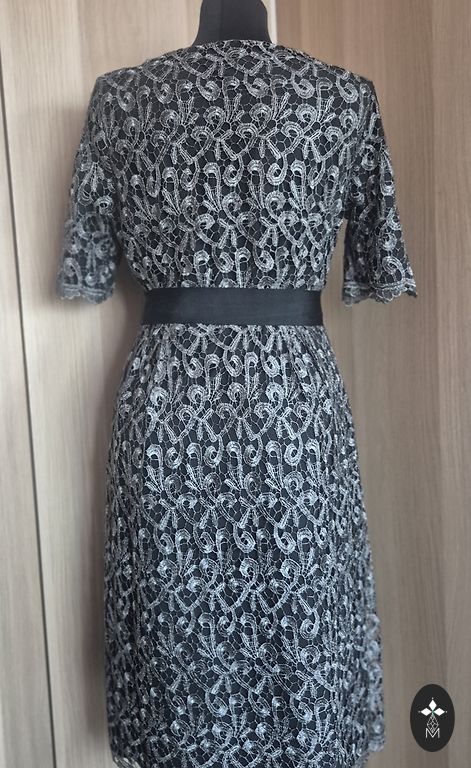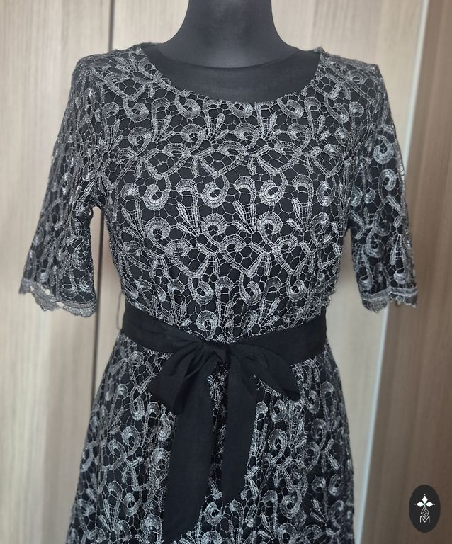Skaista jūas zaļa/zila (deep aqua) kleita ar plisētu svārku daļu. Platums padusēs 47cmx2, viduklis 39cmx2, piedurknes garums 52cm, kleitas garums 100cm. Audums ir nedaudz elastīgs un padodas, necik neburzās un vispār nav jāgludina. Diezgan biezs. Labā stāvoklī. Derēs uz M-M/L izm.