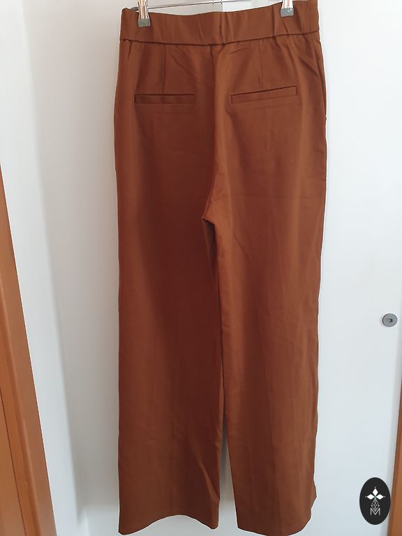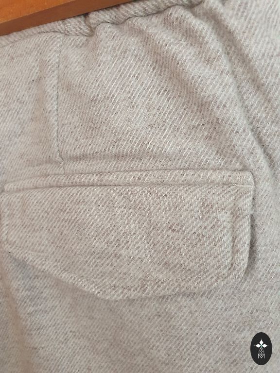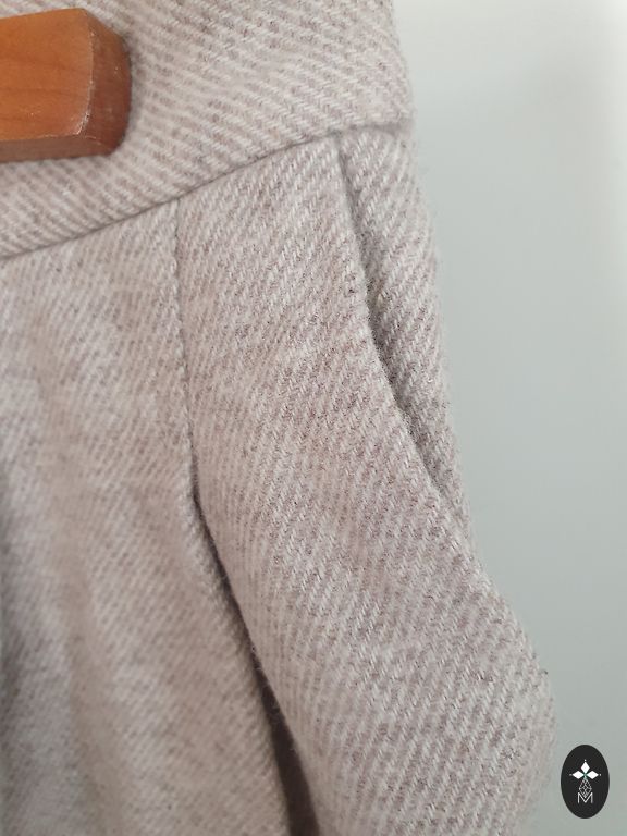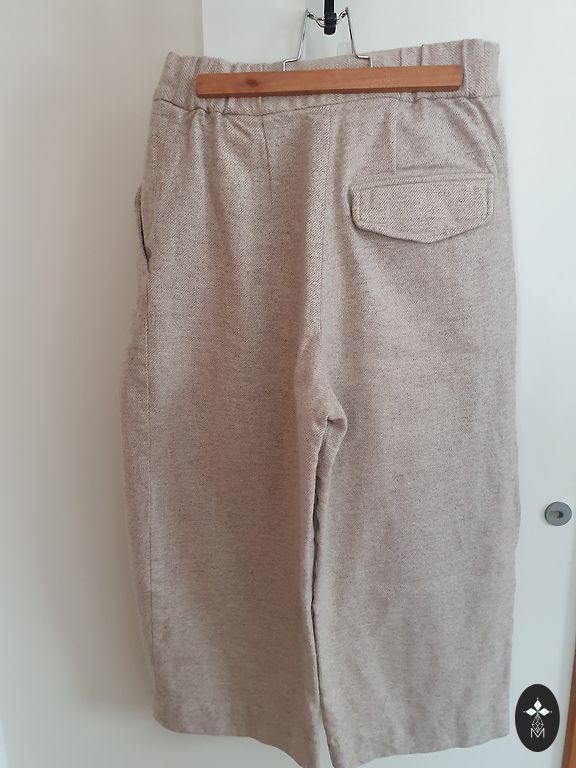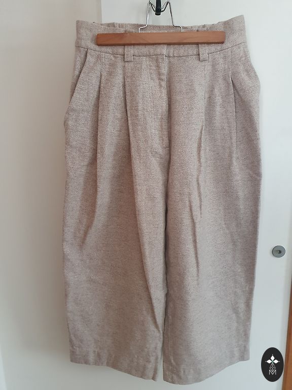 Väga mugavad säärepüksid. Suurepärane välimus poolpikkade saabaste, kampsuni ja oversize villase mantliga. Materjal tundub nagu vill. Koostis - 63% polüester, 36% viskoos, 1% elastaan. Vöökoht tagant kummiga. Külgedel taskud, tagatasku dekoratiivne. Mainisin puudusi, kuna tuleb üle käia aurutriikraua ja narmaste eemaldajaga nii väljast kui seest. Vöökoht - 74 cm/80 cm Puusad - 98 cm/110 cm Jalgevahe - 28 cm Jalgevahelt - 65 cm Pikkus - 92 cm