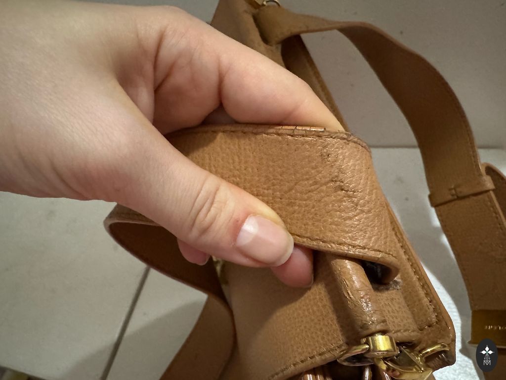Somai neliels defekts rokturu šuvēm, bet nav pamanāms un nelieli nobrāzumi stūros, kā jau nēsātai somai