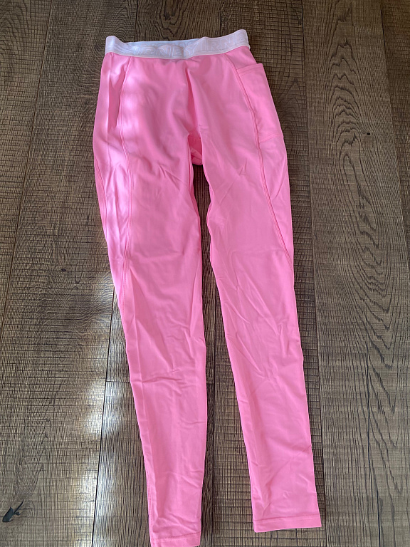 Plėvelės tipo sportinės kelnės, juosmens nestieptas būklės 35 cm, gali išsitempti iki 50 cm, klubai iki 60 cm. Ilgis 105 cm. Kojų apačioje yra užtrauktukai, gali būti atsegami, juosmens vietoje yra guma.