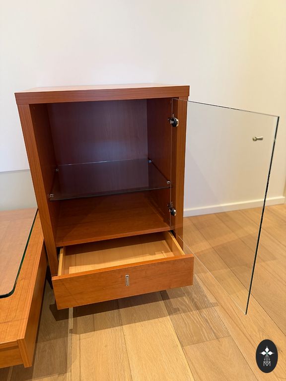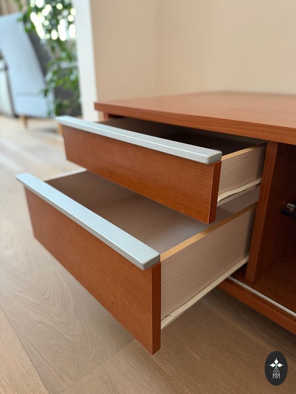 Praktiškai naujas pakabinamas striukėms, apačioje galimybė padėti batus, viršuje bet ką kitą. Abi stalčiai veikia. Paviršius iš medžio drožlių plokštės, kojos iš metalo.