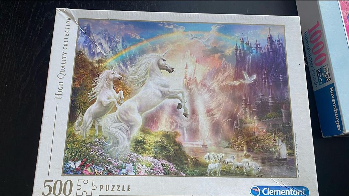 Wooden puzzles in excellent condition, with dinosaurs still in the packaging. Eggs are also in excellent condition. Ravensburger and Pet house puzzles are more used. All pieces are present, but the boxes are already worn.