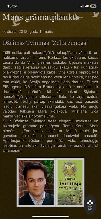 A popular and captivating story about family troubles and secrets. Easy to read, summery. A series has also been adapted from it. The second book in the series (there are 3 in total) is now available at Jānis Roze publishing, but the first one cannot be purchased online.