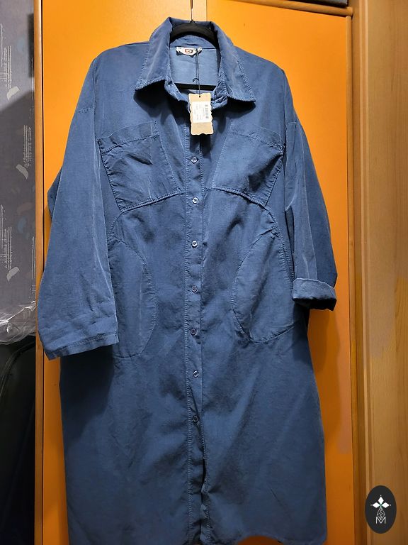 Bought as used. Too small, it's bad that there are people who inaccurately list measurements online! Bust 55×2cm, hips 57×2cm, length 96cm. The dress has pockets at the back, a small slit, and a zipper on the back. The dress is labeled 46ixm, nicely tailored to the figure, with a lining. The sleeves are not long, but half-length.