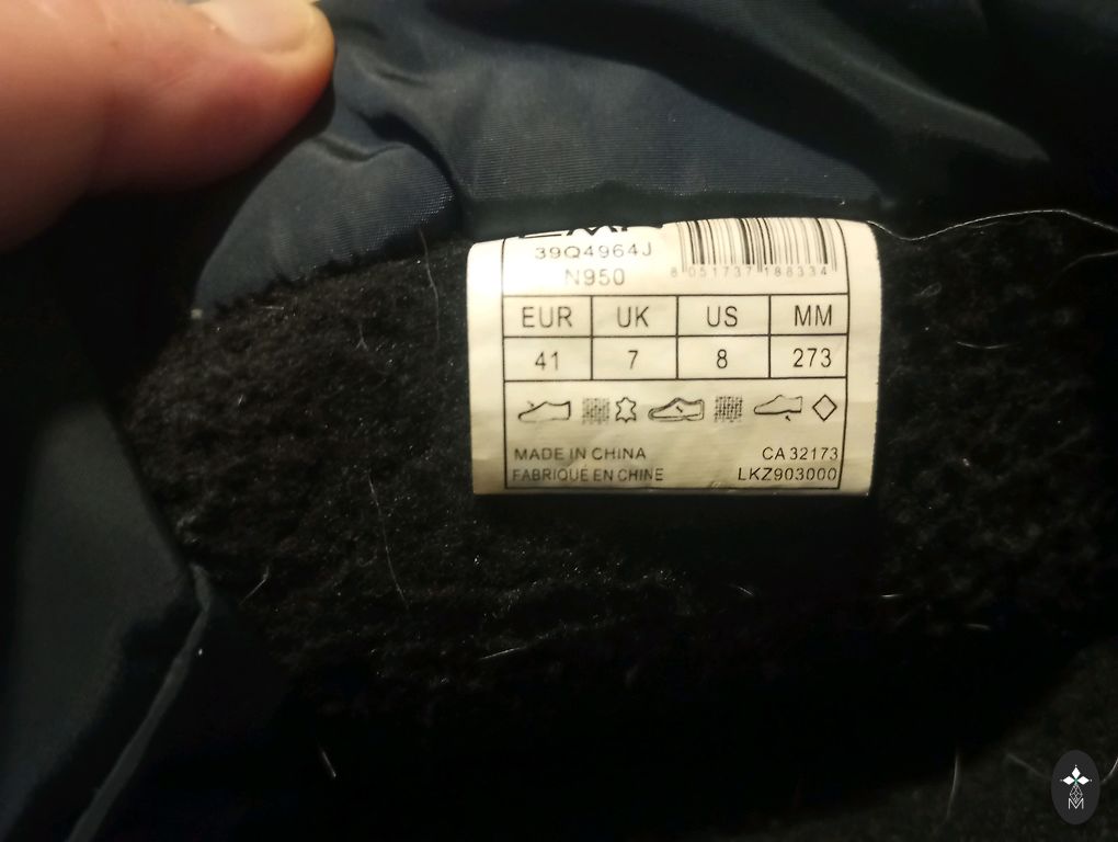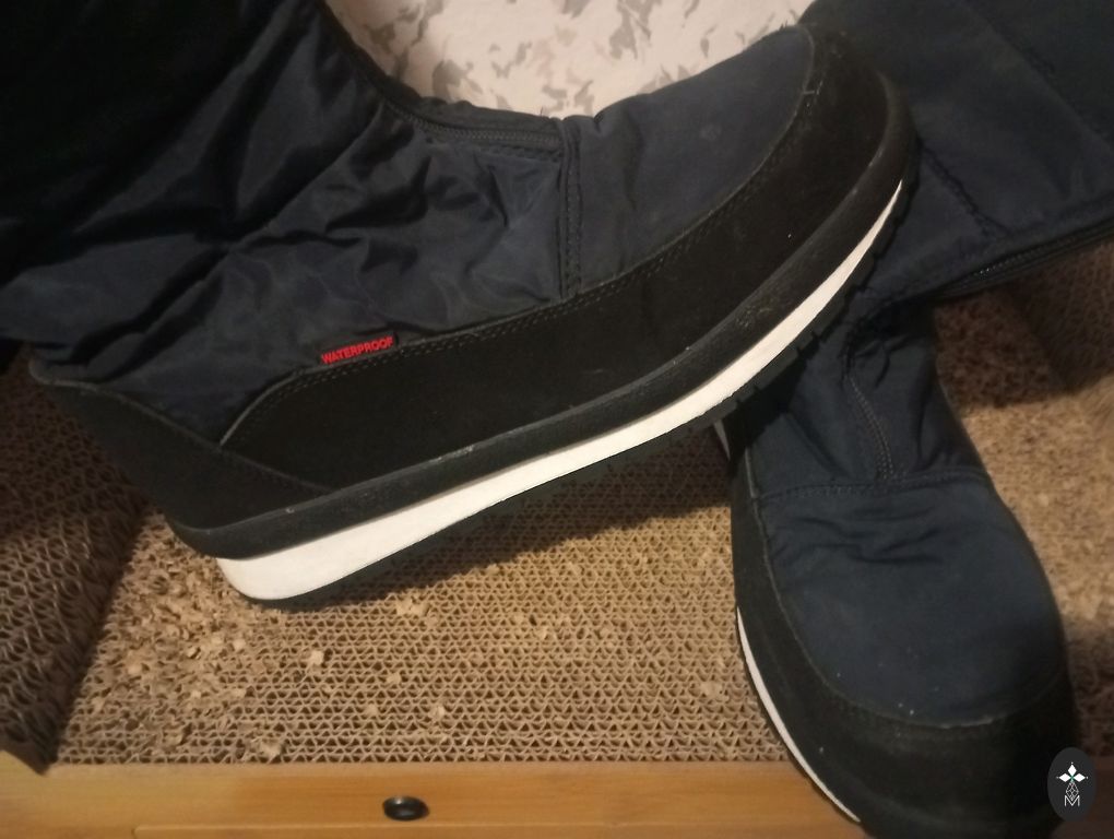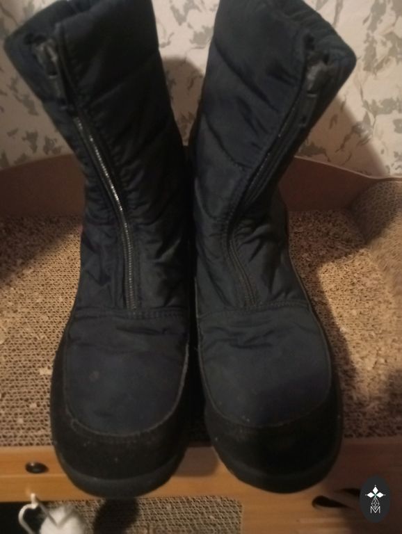 Žieminiai batai, atitinka 40 dydį, šilti, viršus sutraukiamas virvelėmis, tik vienas virvelės galas prarado vieną užbaigimo detalę.. neslysta, atstumia drėgmę..