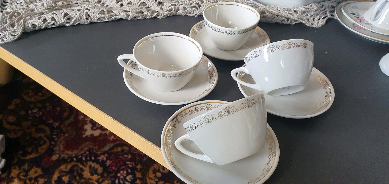 ❤️💙❤️- Royal Vale ❤️- Made in England 💙- smalki ķiršu ziediņi 🌺- balts, kvalitatīvs porcelāns📍- krūzītes tilpums apm.180 ml ☝️- katra kopā ar apakštasīti- 12 eiro 🪙lielais servējamais šķīvis - 12 eiro 🪙- rezervēju pēc apmaksas, šo sūtu ✈️