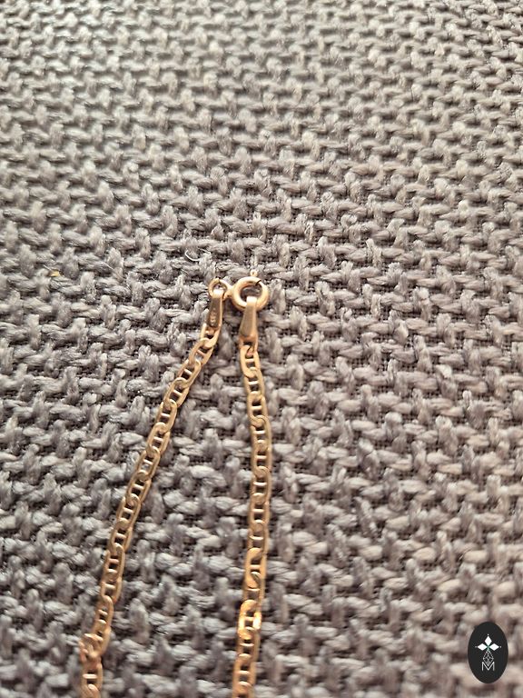 Колье итальянского дизайнера, желтое и красное золото 750 (проба есть), бриллиант 0.05 ct. Длина 43 см. Вес 5.40 гр.