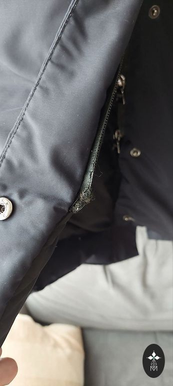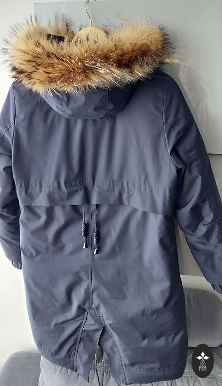 Super warm, quilted long coat. Excellent design. Outer fabric - 100% polyester, filling - dense polyester (syntapon). The coat is dark gray. All zippers work. The coat has a great hood to hide from sudden snowfall. Disadvantage - there is a hole in the right pocket, which can definitely be patched. Selling only because I have changed size. The coat is freshly washed - waiting for a chance to be worn again for a walk in the winter wonderland!