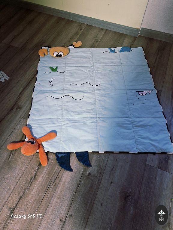 Aktivitāšu paklājiņš kopā ar tārpiņu, kur ir gan spogulītis, gan dažādas bārkstiņas, ko čamdīt. Sūtīšanu sedz pircējs.
