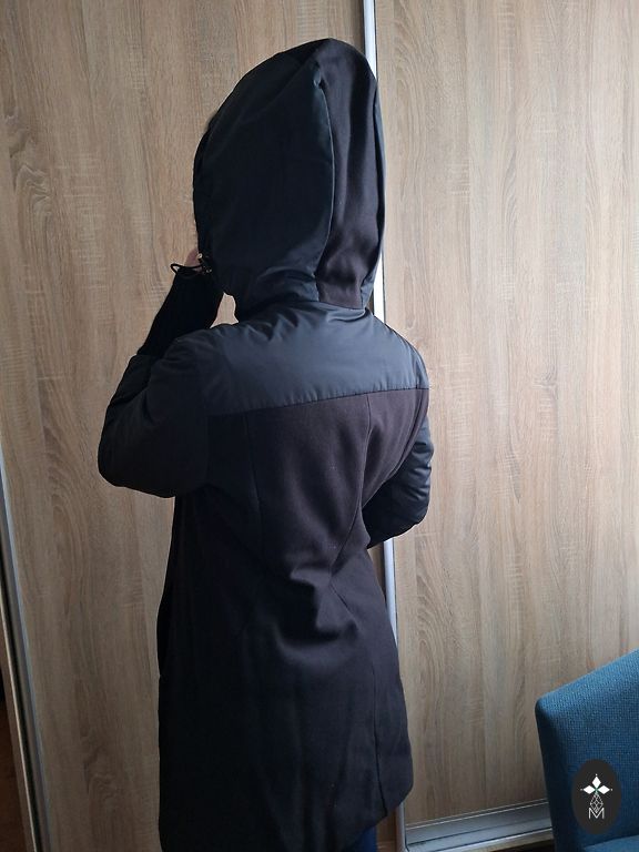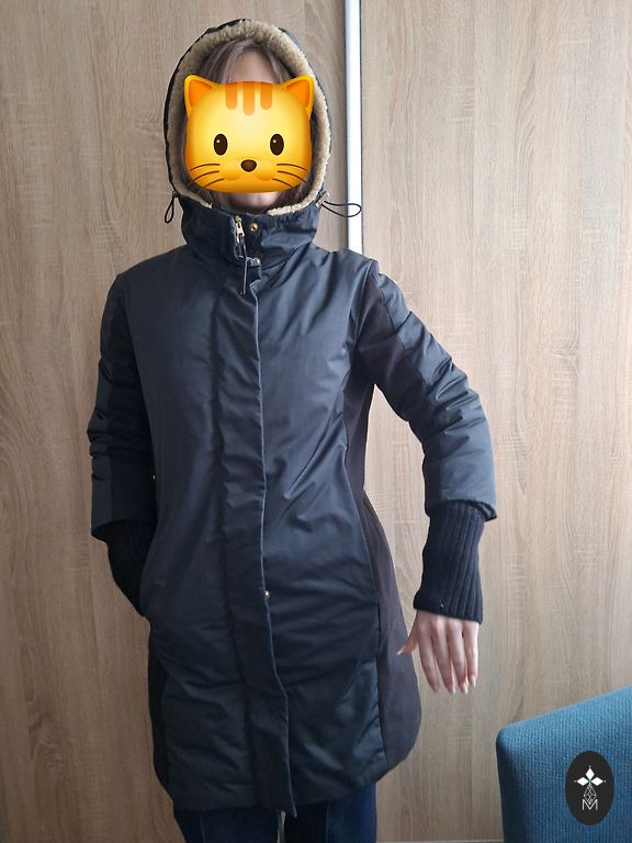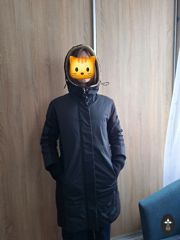 Dūnu pildījums. Ir 2 sānu kabatas. Kapuce ir noņemama. Apkakle ir stāva.