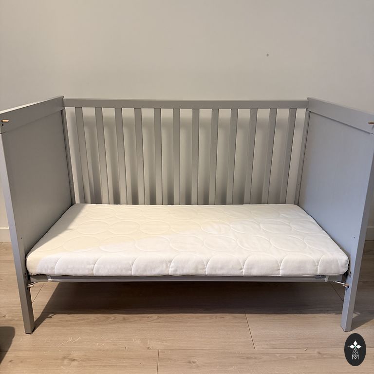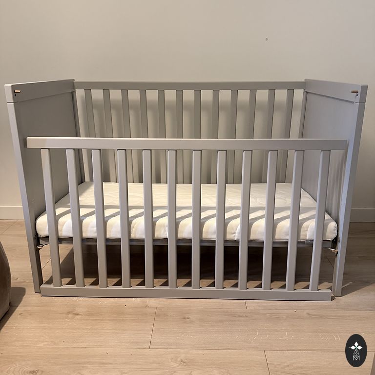 Lionelo sliding baby crib. Convenient for use next to the parents' bed. Suitable for a newborn. Color – gray.