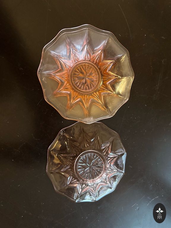 Parduodu 2 arbatos servizo Laima lėkštutes. Abi turi raudonus antspaudus. Nedidelis spalvos praradimas ir kelios juodos dėmės. Viską galima pamatyti nuotraukose. Kaina 25€/ vnt.