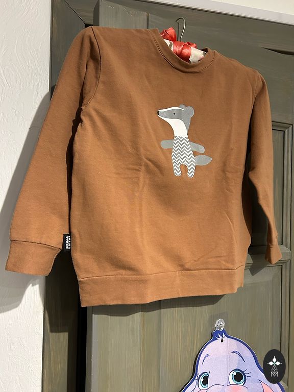 Stiilne soe kamps, märgitud suurus 110/116, kuid alates 104 sobib oversize (küsige mõõtmeid cm, kui vaja).